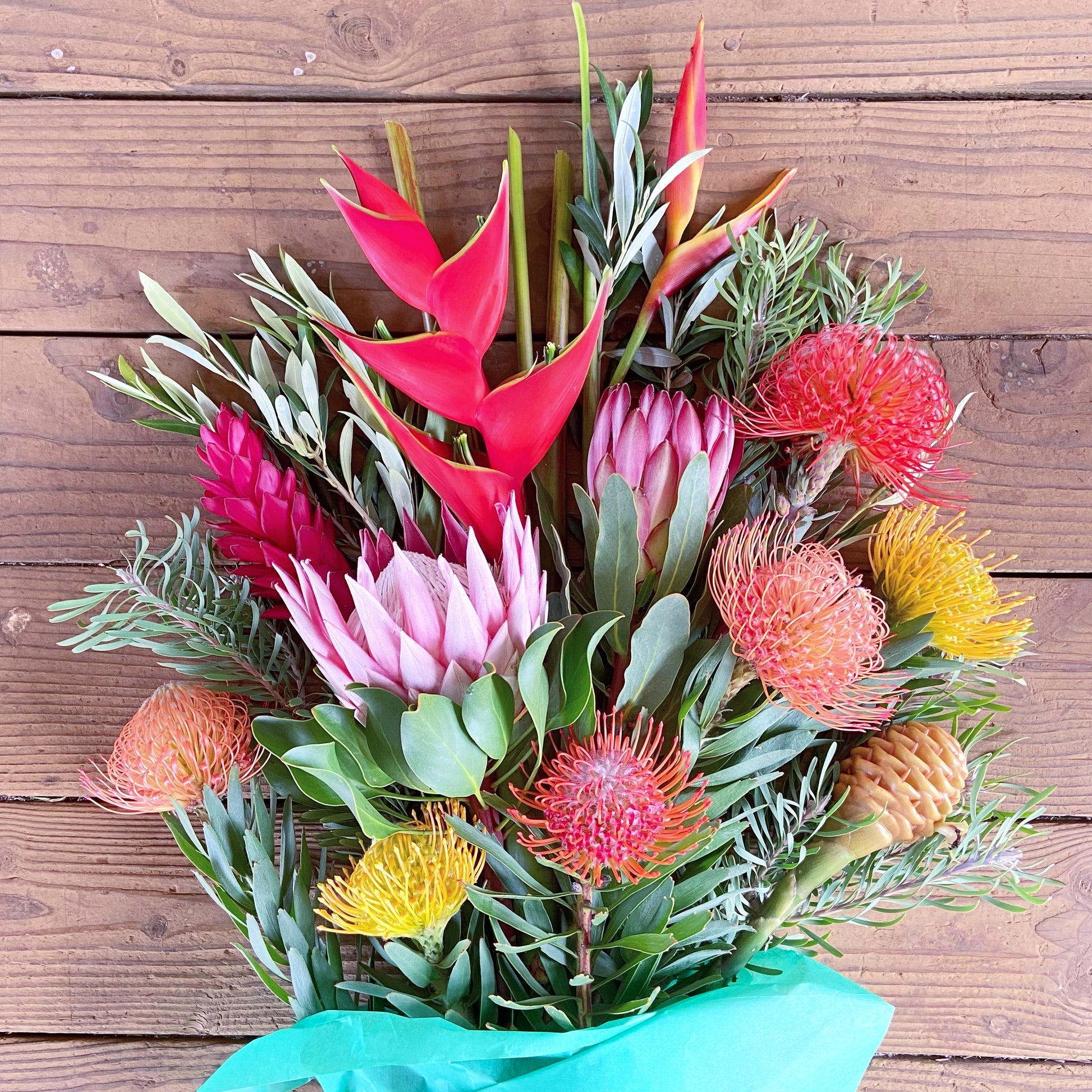 These are our year-round gift boxes of long stems. Each gift box is a mix of all the varieties that bloom throughout the seasons of the year. The selection will change slightly with the season, but our gift boxes include the royal and velvety Kings*, minks* and an array of pin cushions in yellow, orange, salmon and red with beautiful greenery completing the selection of flowers. Vase not included.