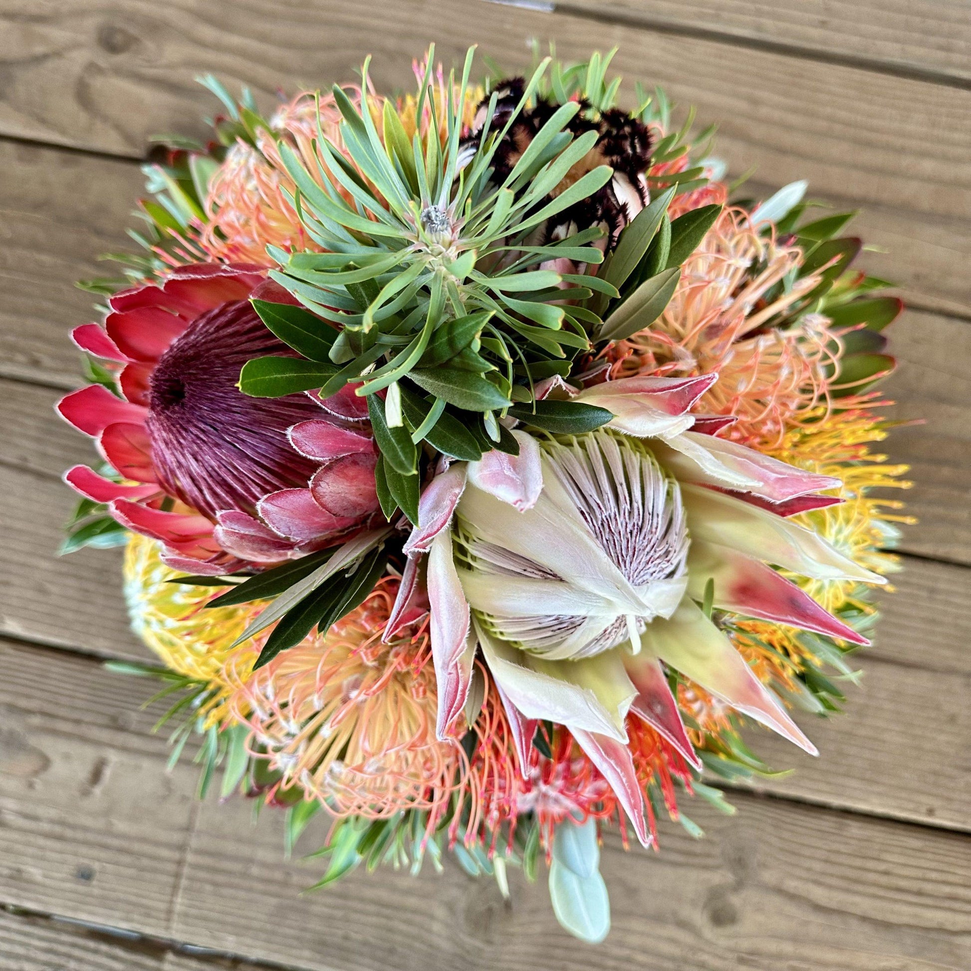 *Flower Advisory: Our King and Mink protea and different pincushion varieties/colors bloom in limited quantities during certain times of year, especially March-September. However, due to a variety of weather conditions, blooms may be limited year-round. We may need to supplement the flower selection. We will be adding beautiful tropical flowers in the gift boxes throughout the year based on seasonal availability. If we have the kings and minks, we will certainly add them into the gift boxes. Tropical substitutions will include lovely varieties such as Pink Ginger, Red Ginger, beehives, heliconia, barbados, bird of paradise, tropic fleurs, and green ice. We will also sub other or more varieties of protea when available.